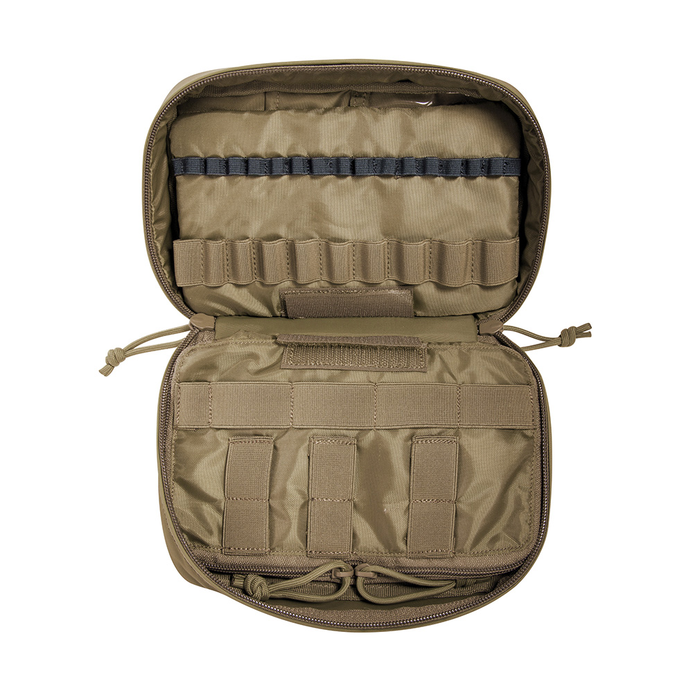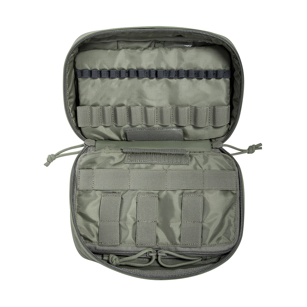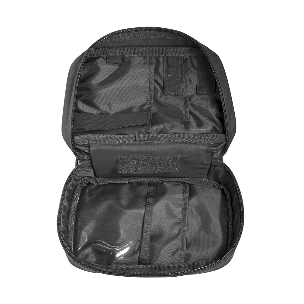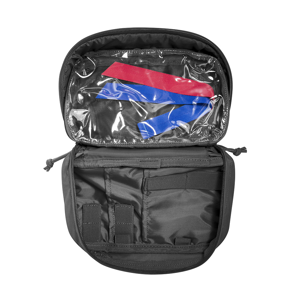 A small rescue medic pouch with various compartments and elastic loops for loading medical equipment and supplies. Adjustable and changeable grab handle, alternative handle color options provided. Hook & loop panel on the back for fixation within larger TT backpacks, medic packs and bags. Front Hook & loop strip for identification. Front transparent hook & look closure sleeve for documents.