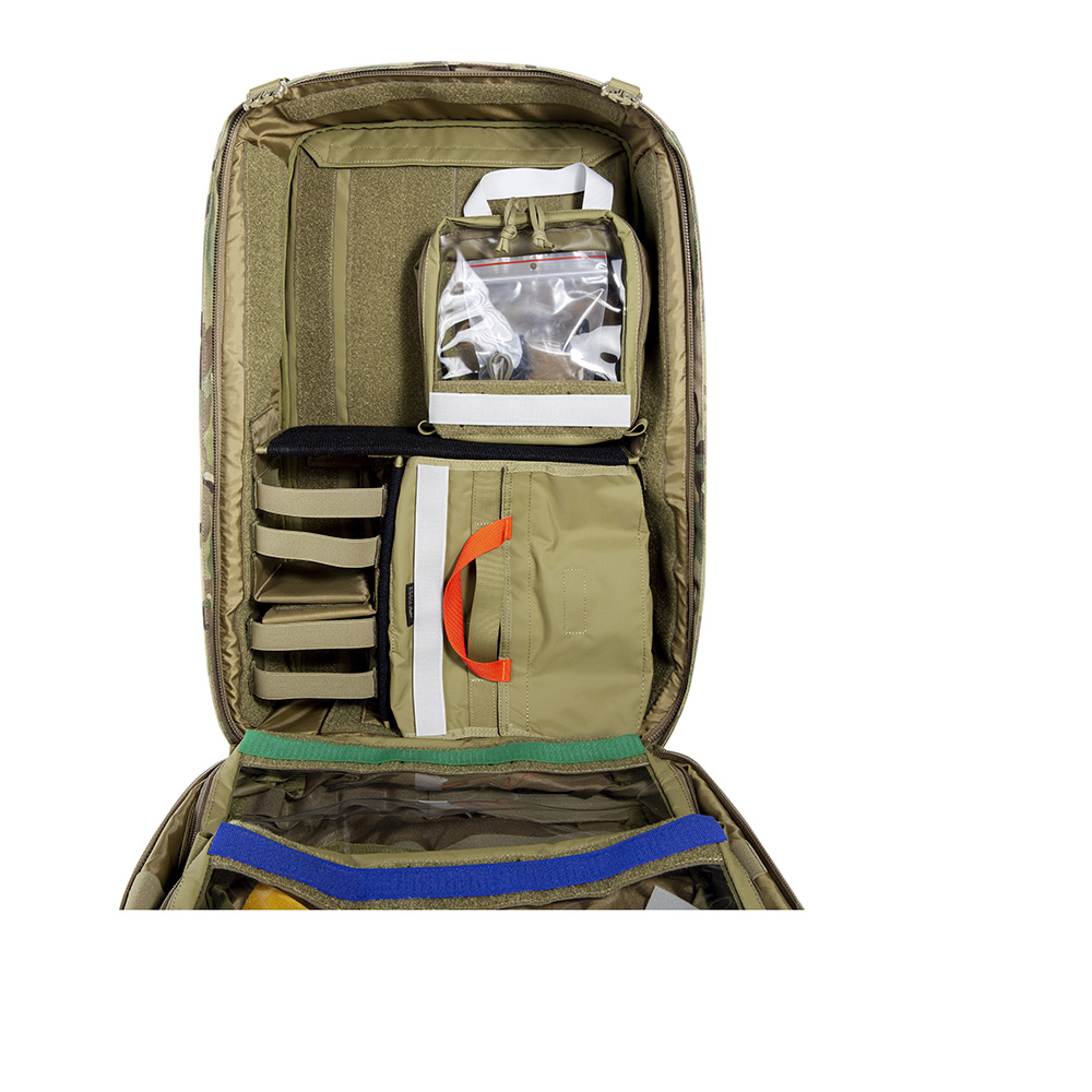 A large paramedic backpack with functional interior layout. The TT First Responder Move On 50 offers multiple removable pouches, a removable Tegris® panel with hook & loop and various elastic loops t...