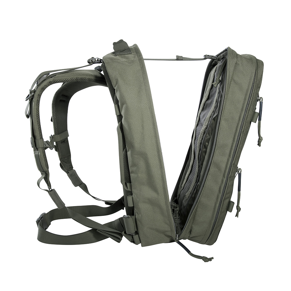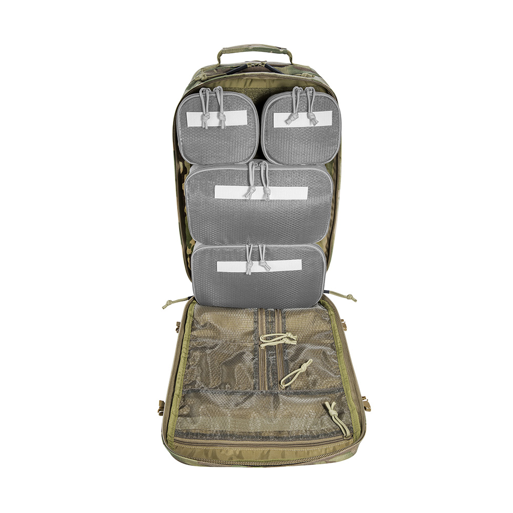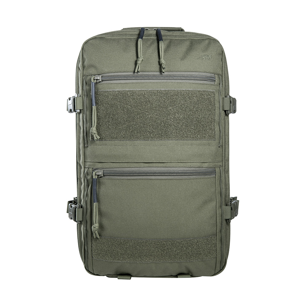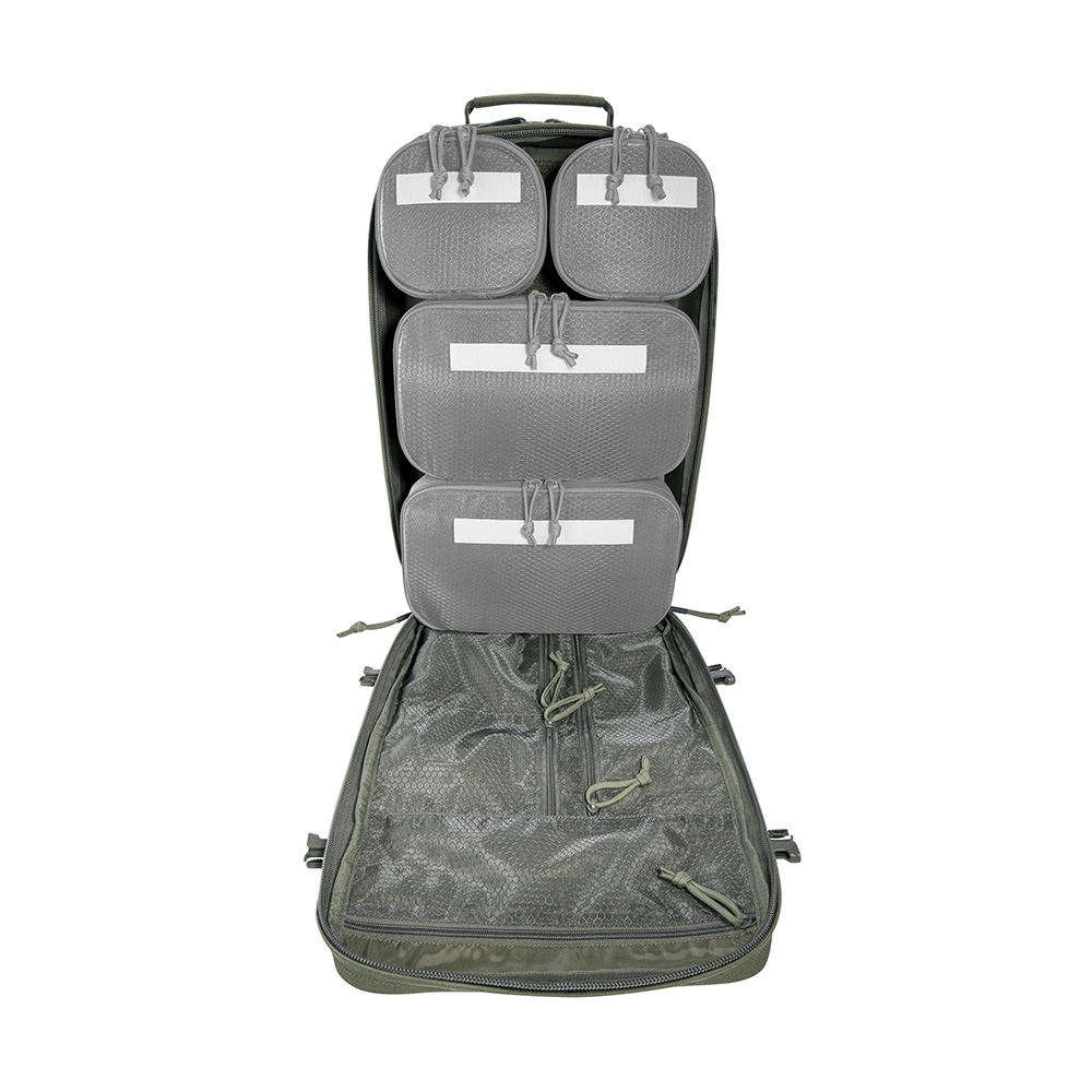 A large escape & survival backpack with versatile organization options. The TT Modular Grab Pack 30 offers 30 Liters of volume and two large, fully opening compartments. The front compartment is equipped with four hook & looped zippered pouches of different sizes, and there are flat organizer pockets in the lid. The back wall of the rear compartment features a large hook & loop surface with two MOLLE strips for individual customization. Documents, for example, can be stowed in the flat front pockets. The backpack has a padded carrying system that can be adjusted to your own back length. Shoulder straps and waist belt can be removed, for example when the backpack is stowed in vehicles.