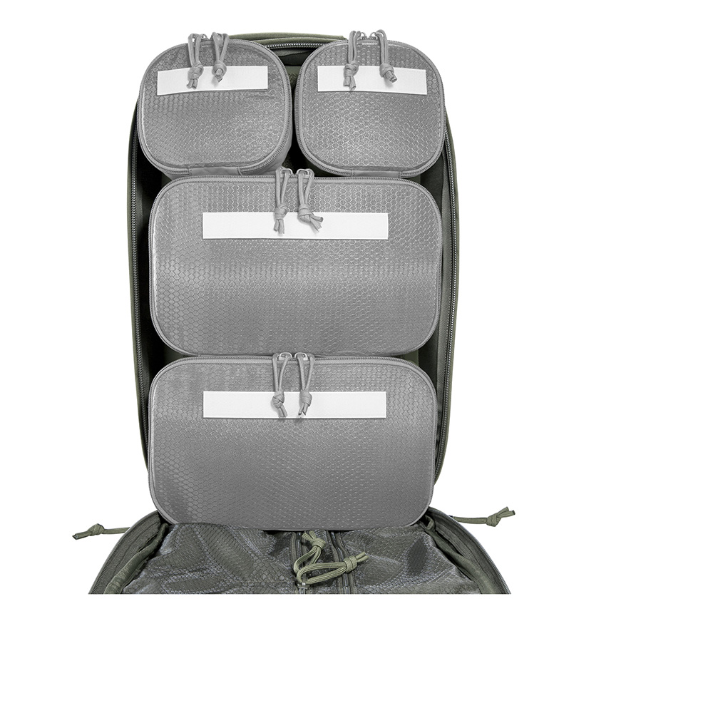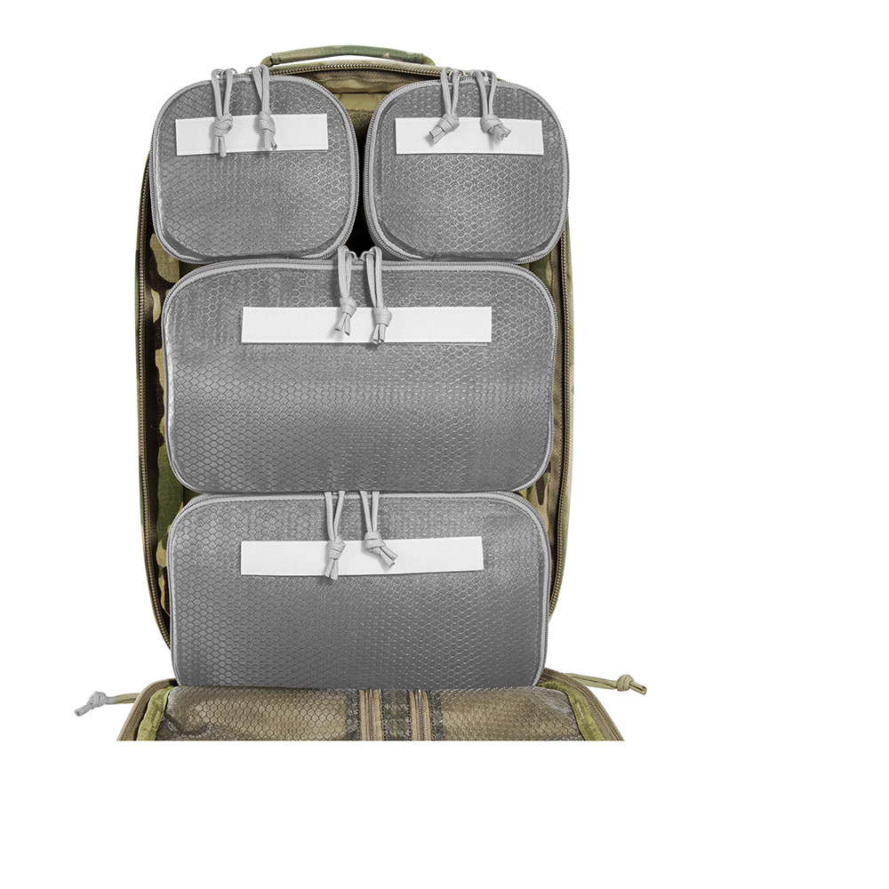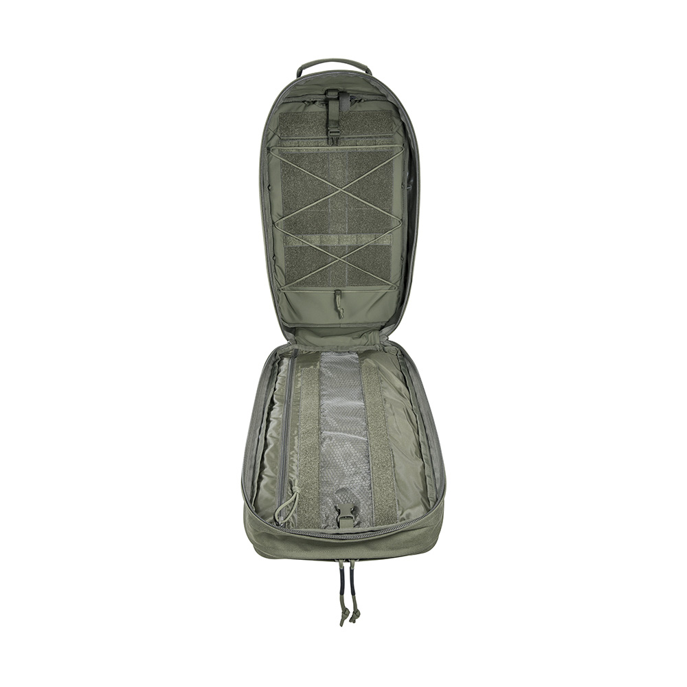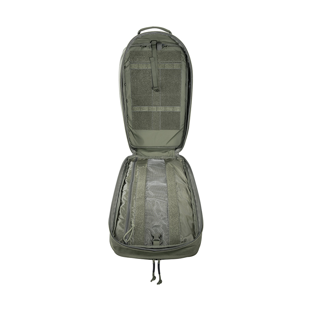 A large escape & survival backpack with versatile organization options. The TT Modular Grab Pack 30 offers 30 Liters of volume and two large, fully opening compartments. The front compartment is equipped with four hook & looped zippered pouches of different sizes, and there are flat organizer pockets in the lid. The back wall of the rear compartment features a large hook & loop surface with two MOLLE strips for individual customization. Documents, for example, can be stowed in the flat front pockets. The backpack has a padded carrying system that can be adjusted to your own back length. Shoulder straps and waist belt can be removed, for example when the backpack is stowed in vehicles.
