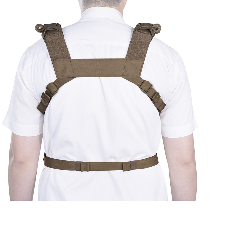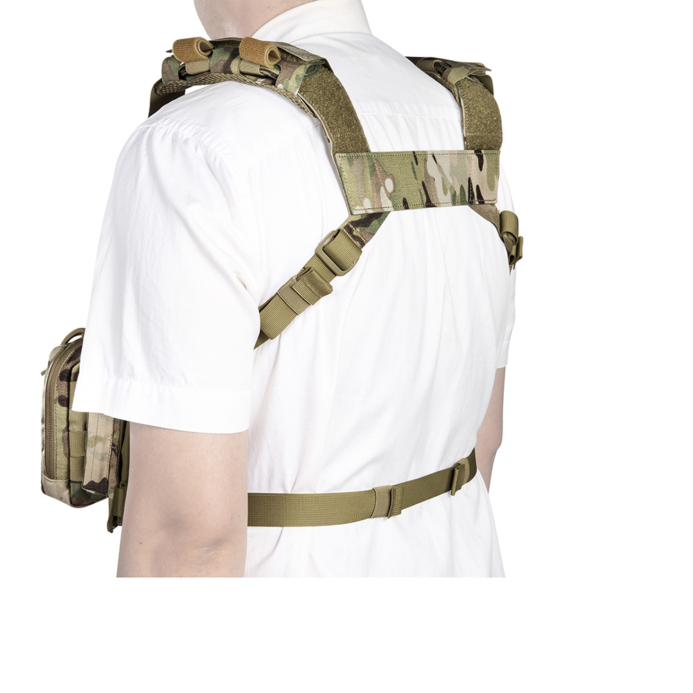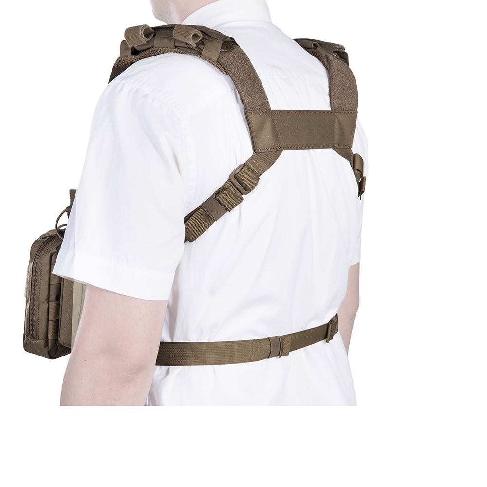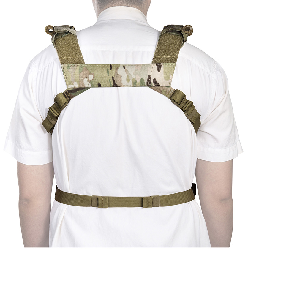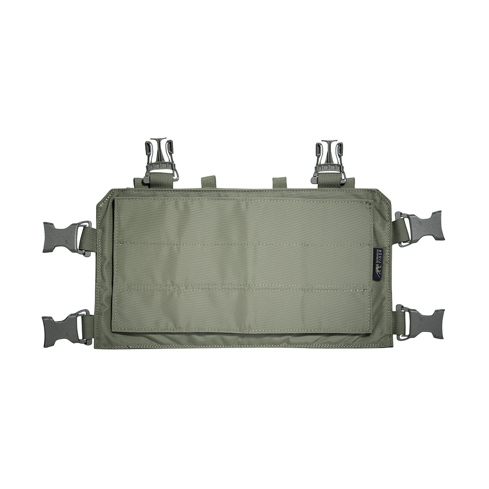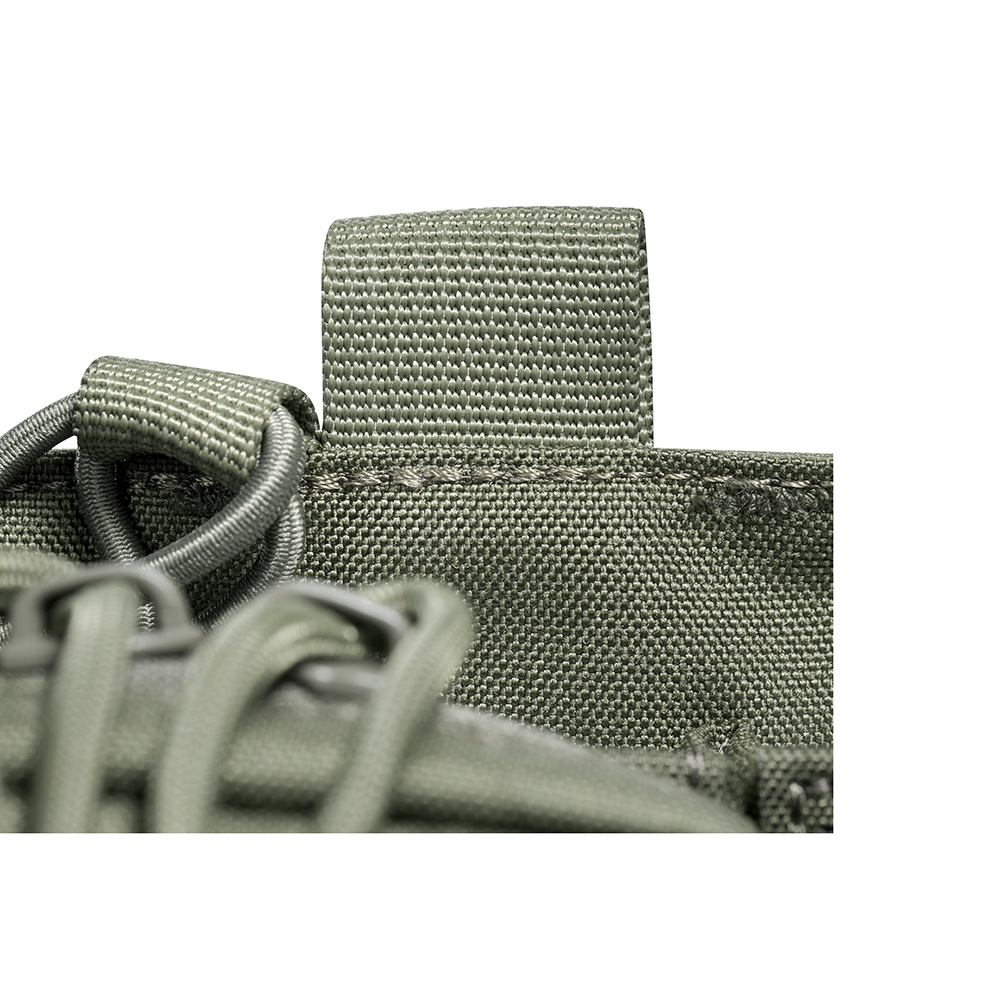 Flat chest rig with four fixed magazine pouches, detachable side pouches and front flap with hook & loop fastening for size M SAPI plates. The TT Modular Chest Rig M4x4 features MOLLE in laser-cut design and can be combined with the TT Modular Chest Rig Pack. It can also be attached to plate carriers. Removable shoulder pads are included.