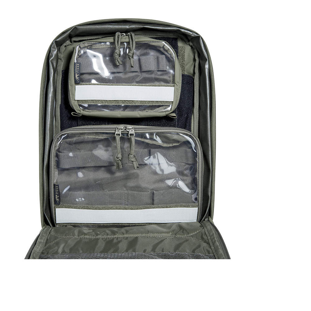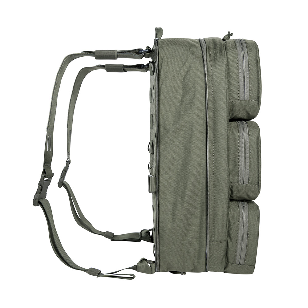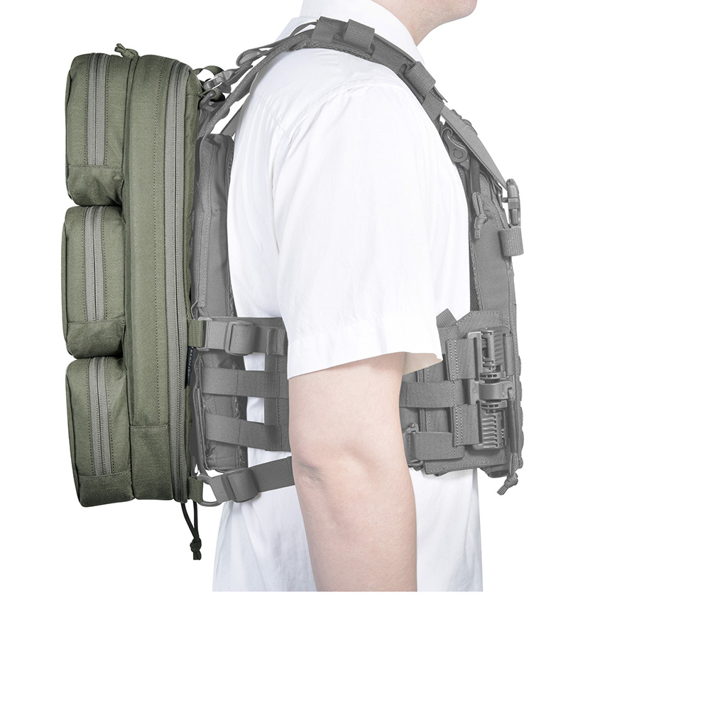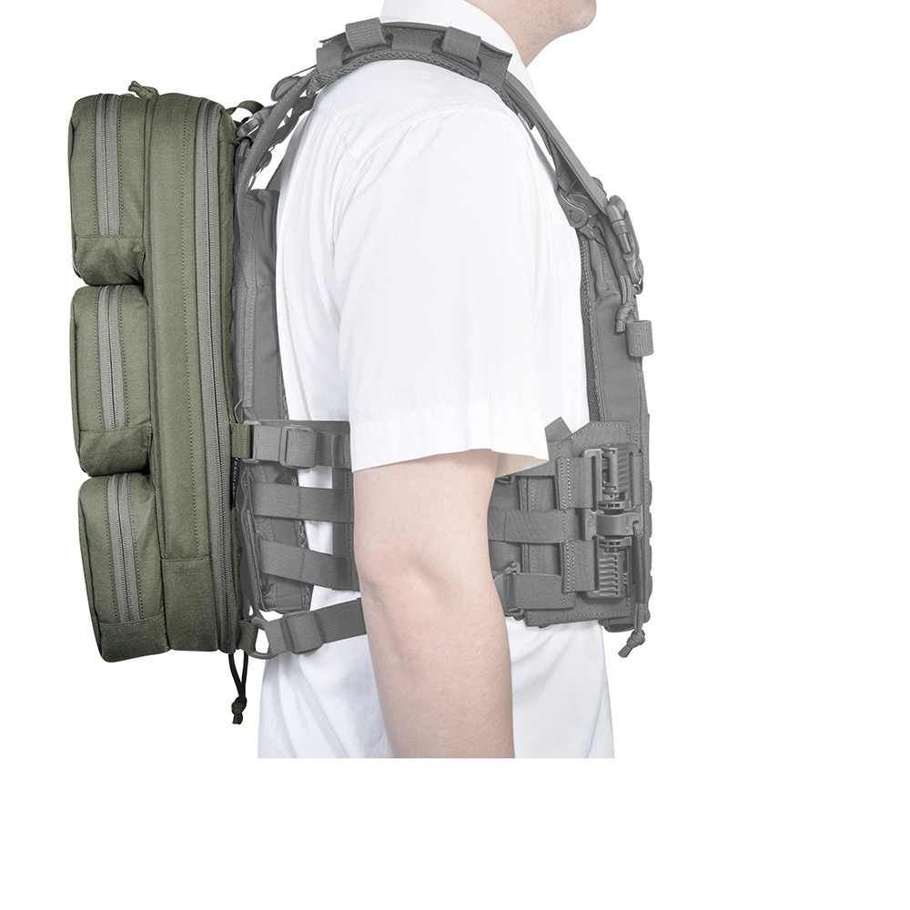 Backpack with insert for a ballistic plate to complement the TT Modular Chest Rig M4x4. The TT Modular Chest Rig Pack is designed for use with the TT Modular Chest Rig M4x4. It can also be attached to plate carriers (adapter included) or used on its own. The backpack has a main compartment, three front pockets and a slot for a ballistic plate. The volume can be varied between 12 Liters and 20 liters. Can also be worn as a back piece on the TT Chest Rig MK II and TT Chest Rig MK II M4 with the supplied adapters.