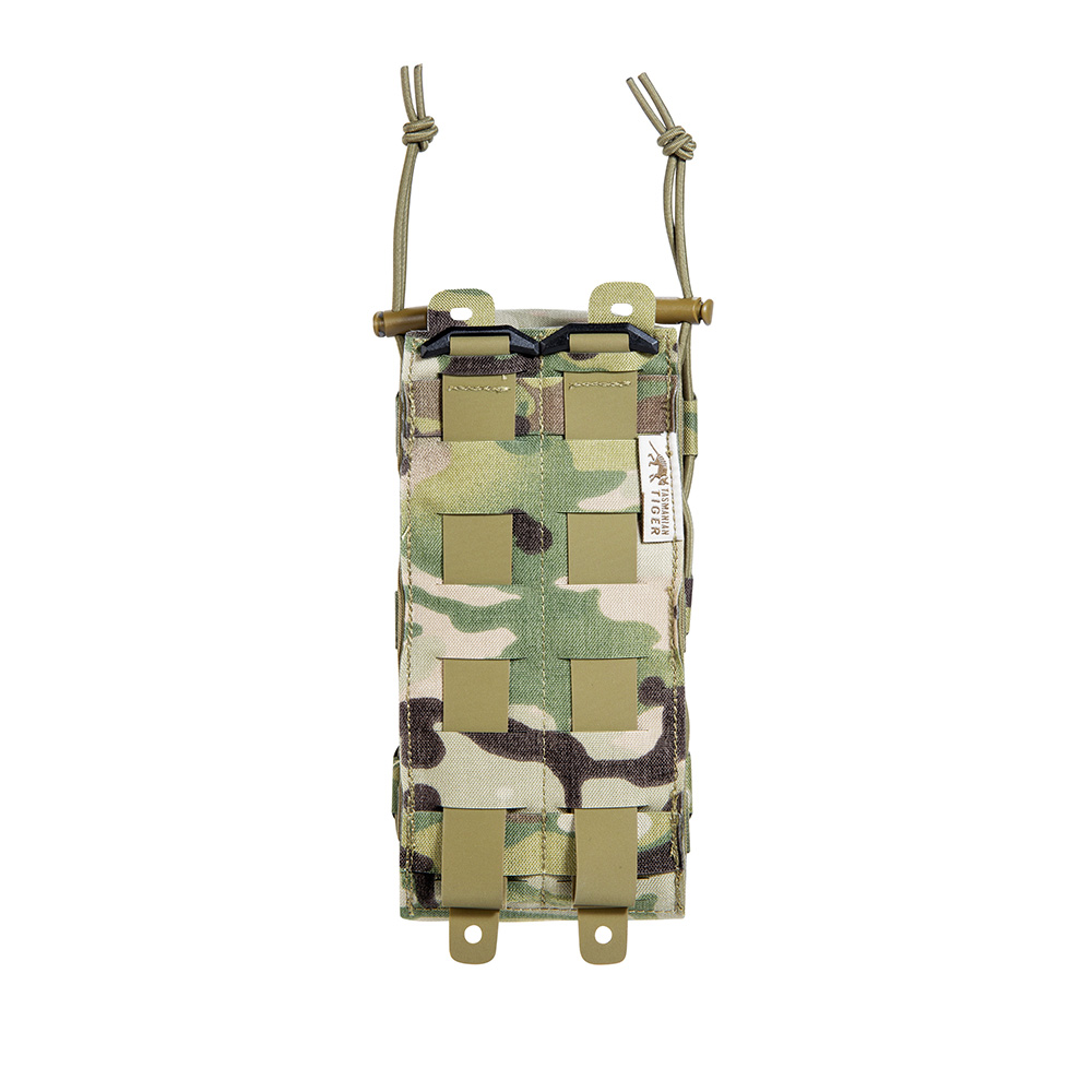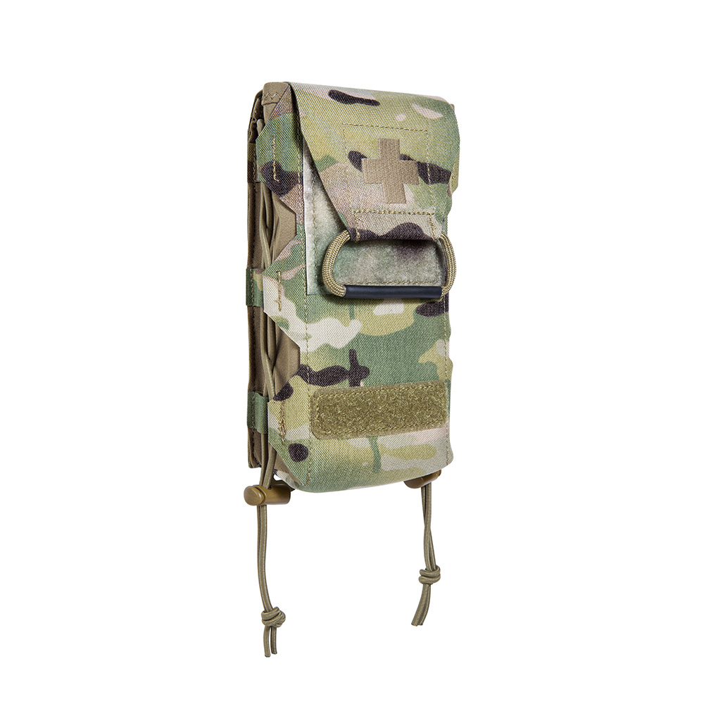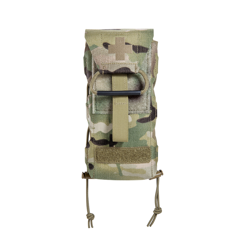 A slim vertical IFAK Pouch with elastic side compression requires 2 MOLLE loops for attachment to plate carries, vests and backpacks. Hook & loops surface on the front for identification patch.